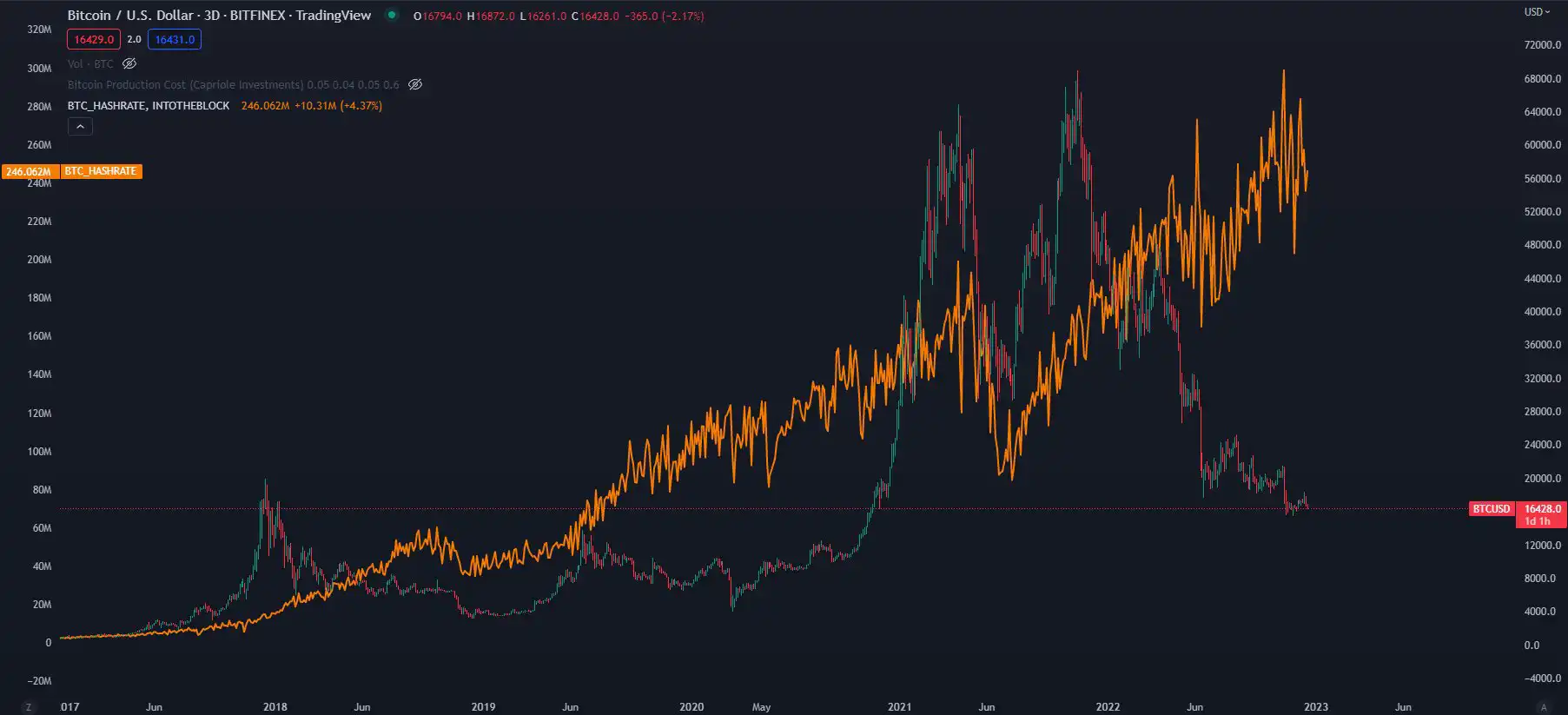 «Одним из самых впечатляющих графиков является скорость хэширования Bitcoin. После более чем месяца торговли BTC ниже $20 000 майнеры еще не сдались»