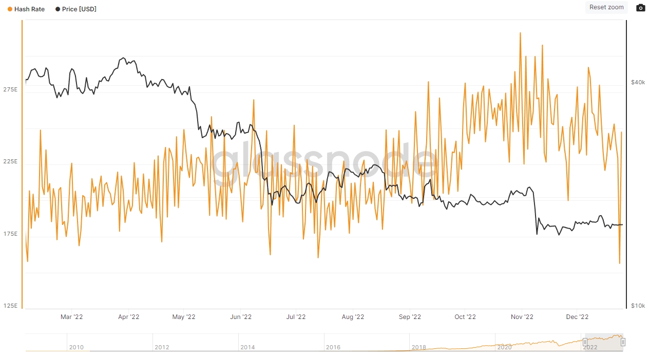 24 декабря хешрейт первой криптовалюты упал с 229 EH/s до 156 EH/s — примерно на 32%. Это произошло на фоне отключения нескольких крупных майнинговых предприятий в США.