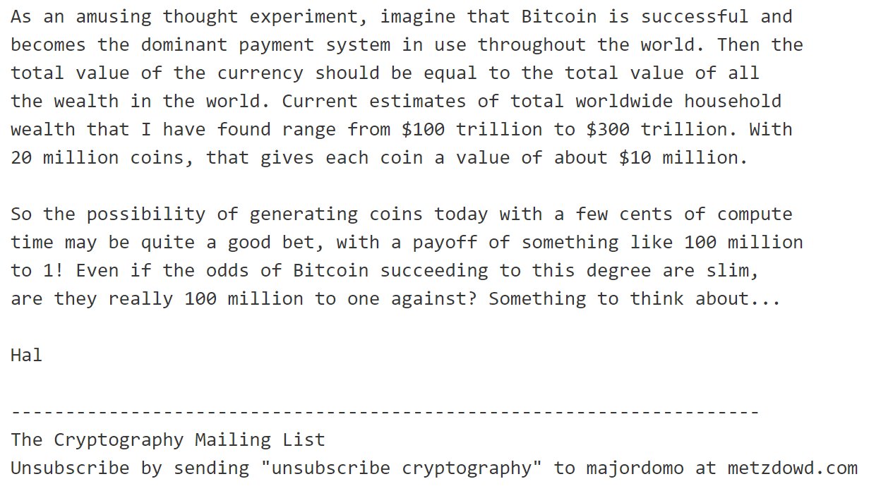 ✨ Hal Finney: $10 million per #Bitcoin