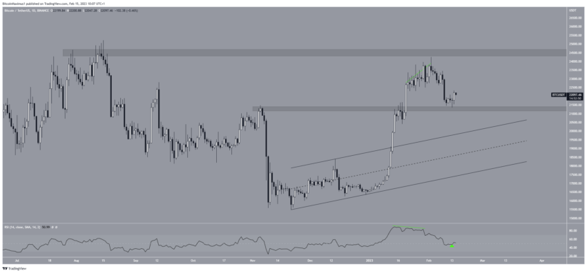 Дневной таймфрейм дает более неоднозначное представление. Хотя биткоин и вырвался из восходящего параллельного канала, к концу января он потерял импульс — а RSI сформировал медвежью дивергенцию.