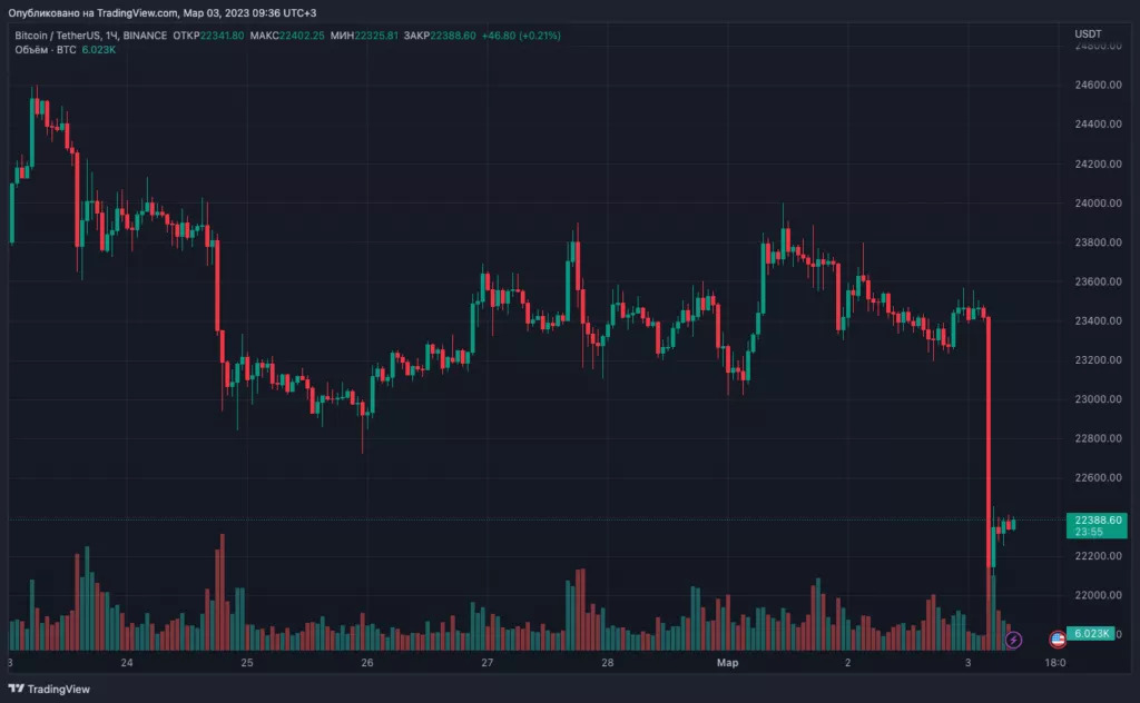 В ночь на 3 марта котировки первой криптовалюты в моменте опустились ниже $22 000. За последние сутки актив подешевел на 4,5%, согласно CoinGecko.