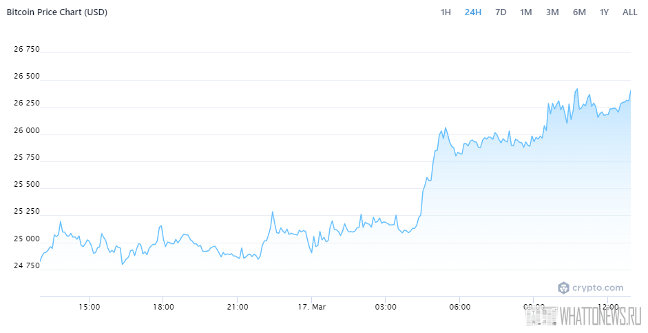 За последние 24 часа биткоин продемонстрировал впечатляющий рост более чем на 6%, достигнув максимума в $26 350 в пятницу утром, согласно данным CoinGecko.