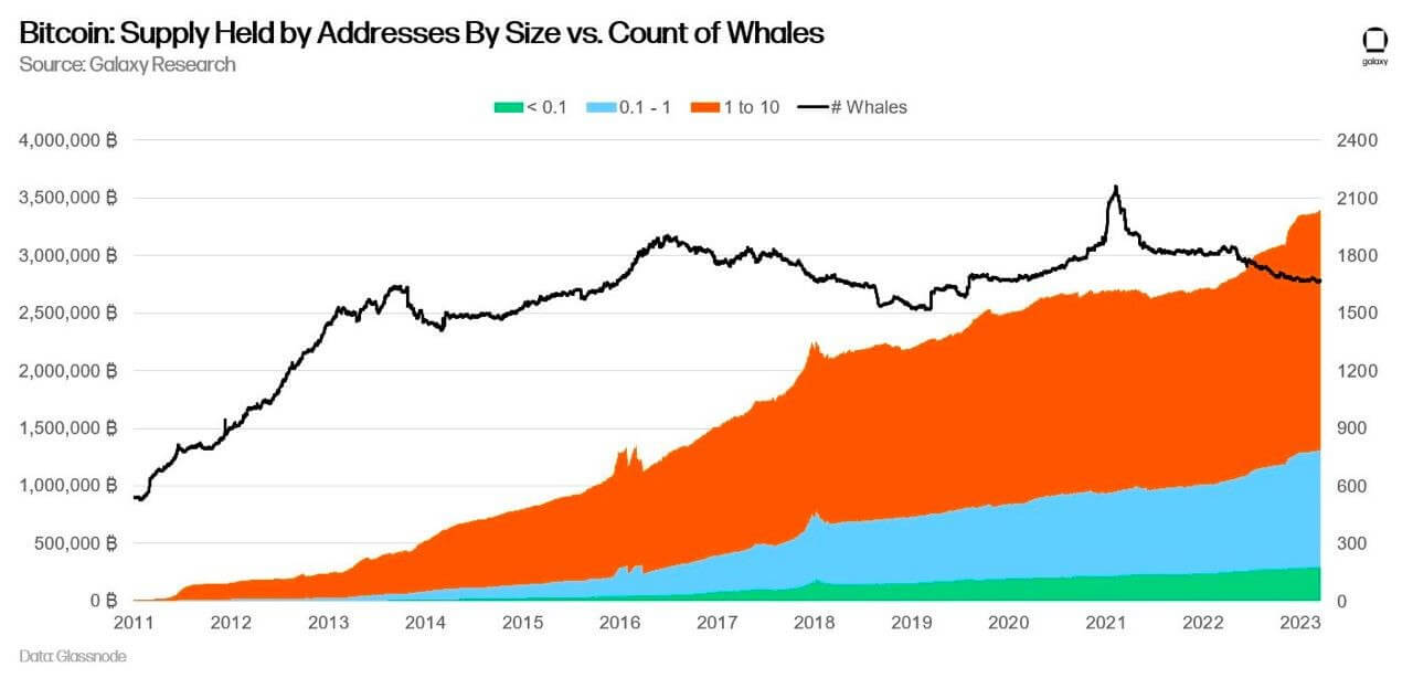 Здесь стоит отметить, что количество крупнейших инвесторов, которых также называют китами, постепенно сокращается. А значит можно говорить о здоровом распределении первой криптовалюты.