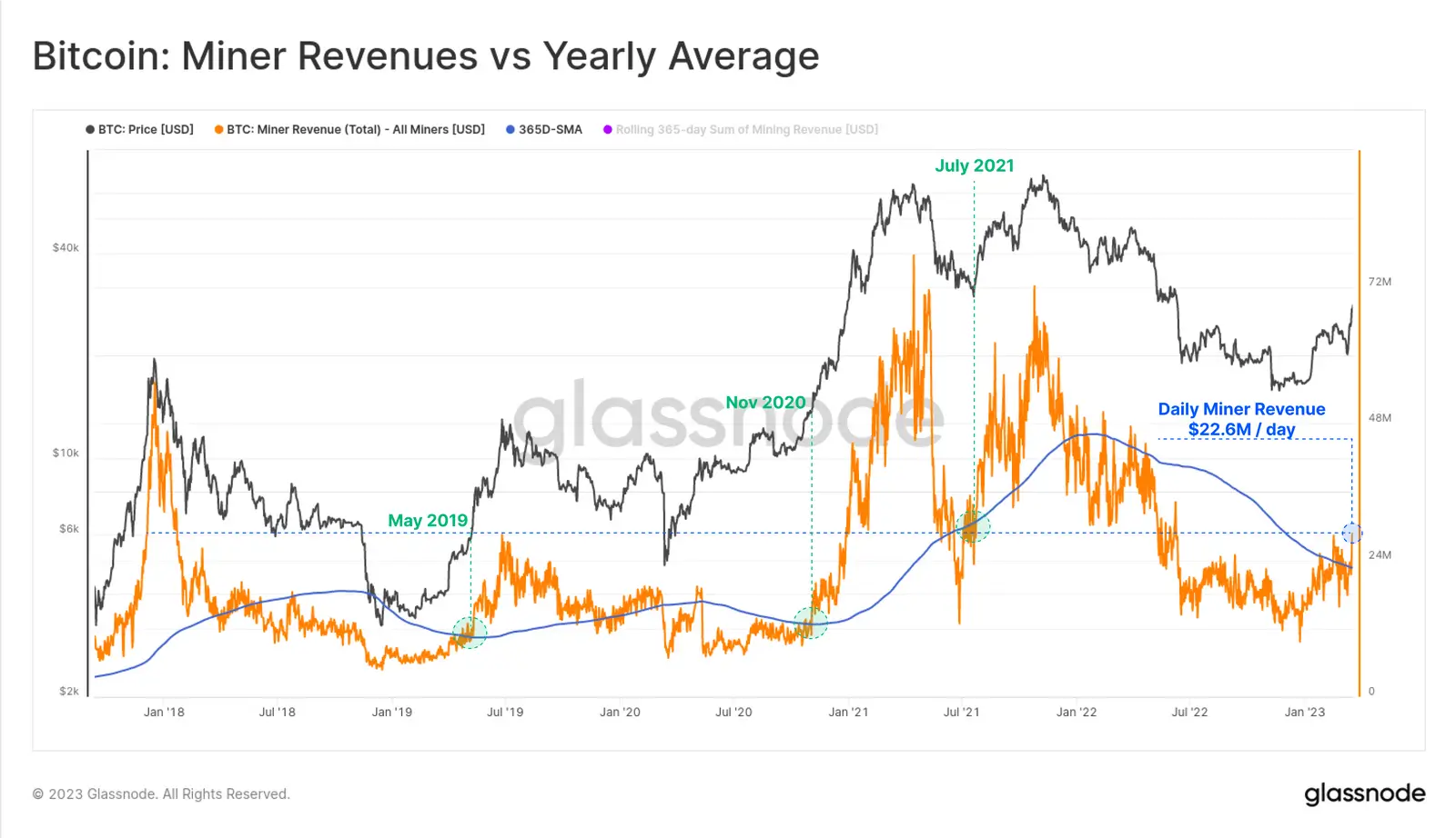 Одними из первых перемены в экосистеме Биткоина ощущают майнеры – их суточный доход поднялся до 22.6 миллиона долларов.