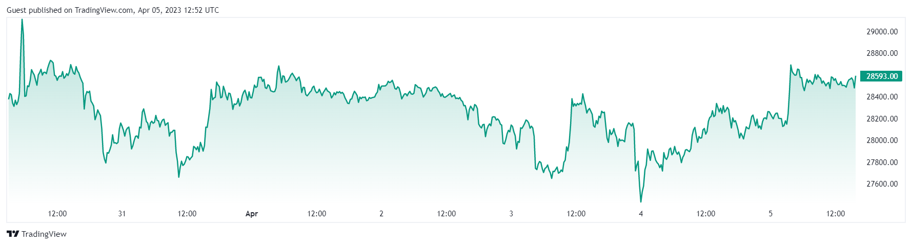 В заявке утверждается, что компания закупилась криптовалютой в период с 24 марта по 4 апреля при курсе в $28 016. С учетом постепенной скупки криптовалюты средний ценовой диапазон составил для MicroStrategy около $29 803 за один BTC. На момент написания материала курс биткоина едва ли отреагировал на новости, торгуя в суточном масштабе в плюсе всего лишь на 0,7% у отметки в $28 500 в торговой паре BTC/USD, по данным TradingView. Котировки MSTR на пре-маркете тоже отреагировали ростом, хоть и несущественным (всего на один процент), согласно показателям Yahoo Finance.