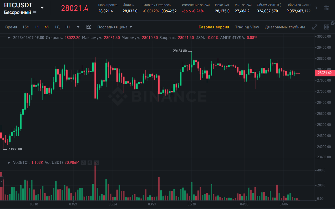 Цена Биткоина продолжает консолидироваться в рамках диапазона 27 000 – 29 000 долларов. Прогноз Биткоина может быть умеренно оптимистичным, так как новости по криптовалюте противоречивы. Также следует отметить, что несмотря на рост на 70% в первом квартале, Биткоин не убеждает всех в том, что он продолжит расти или даже сохранит текущий уровень около 30 000 долларов.