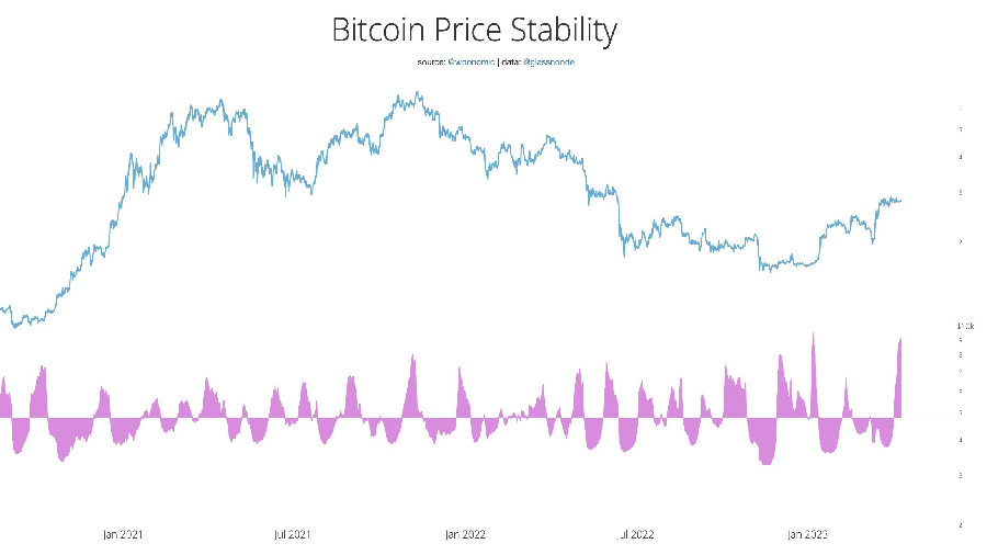 В завершении своих выводов Вилли Ву приводит данные о том, что показатель стабильности цены биткоинов сформировал на графике движения актива пик, и в течение ближайшего времени рынок криптовалют может ожидать прорыв выше психологического уровня в $30 000 долларов.