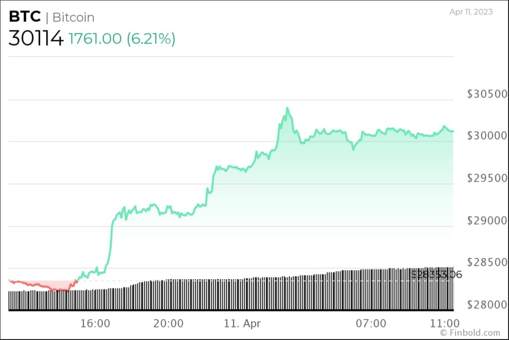 Впервые с июня 2022 года биткоин (BTC) преодолел отметку в $ 30 000 и, судя по всему, будет стремиться к тестированию новых максимумов.
