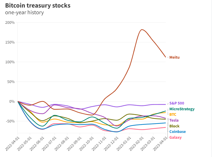 И хотя трудно количественно оценить влияние биткоина на цены акций (кроме MicroStrategy), акции этих компаний за последний год показали отставание от S&P 500.