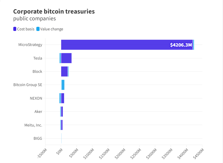 Затраты публичных компаний на покупку биткоинов.