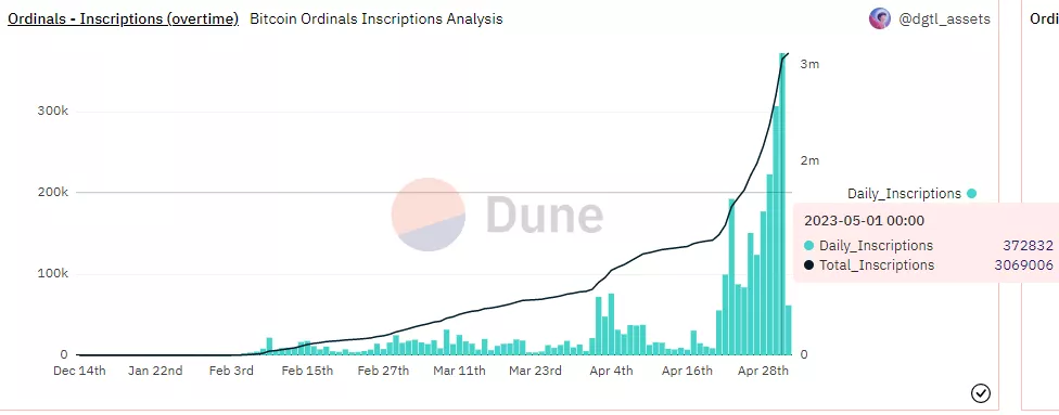 Лишь за последние сутки выпущено более 370 000 Ordinals.