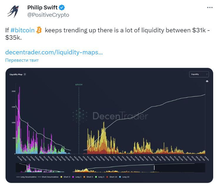 Основатель lookintobitcoin, Филип Свифт, в свою очередь, отметил, что в диапазоне $31-35 тыс. BTC ждет много ликвидности.