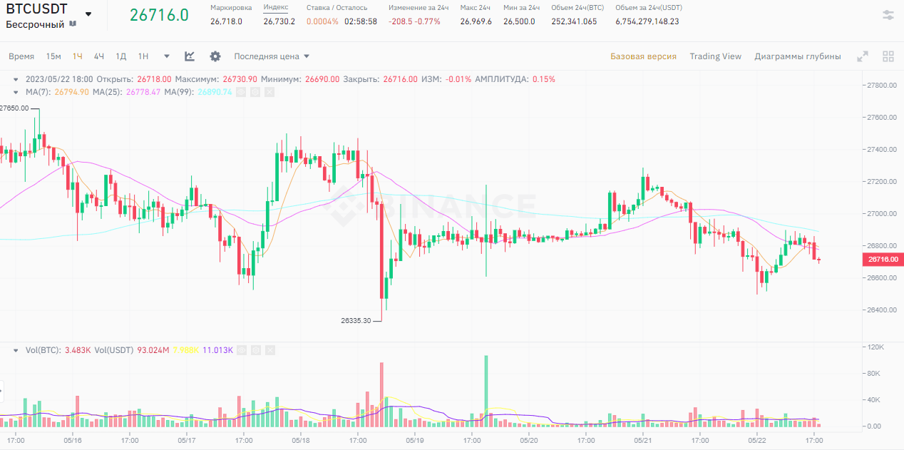 Биткоин начал торговую неделю без особого оптимизма. Цена Биткоина не смогла на момент написания статьи преодолеть отметку в 27 000 долларов. После крайне низкой активности в выходные Биткоин не демонстрирует восходящего тренда.