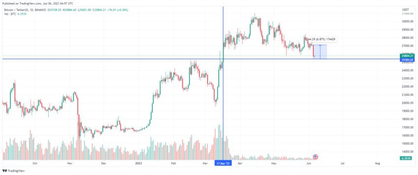 Биткоин упал на фоне выхода новостей о проблемах крупнейшей криптобиржи Binance. Комиссия по ценным бумагам и биржам США (SEC) предъявила торговой платформе 13 обвинений, которые включают незаконную деятельность на территории страны и нарушение закона о ценных бумагах.