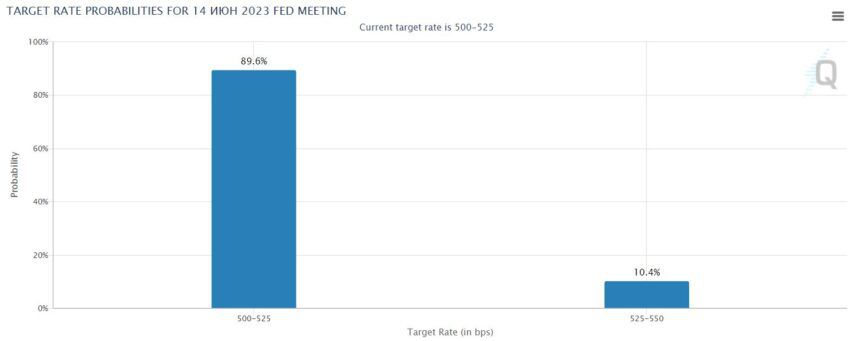 Сегодня, 14 июня, ФРС США представит очередное решение по ключевой ставке. Публикация пресс-релиза запланирована на 21:00 (МСК). После — в 21:30 (МСК) состоится конференция главы ФРС Джерома Пауэлла. По состоянию на момент написания обзора, почти 90% участников рынка считают, что регулятор оставит ставку на прежнем уровне. Позитивный прогноз основан на падении инфляции в США до самого низкого уровня больше чем за два года.