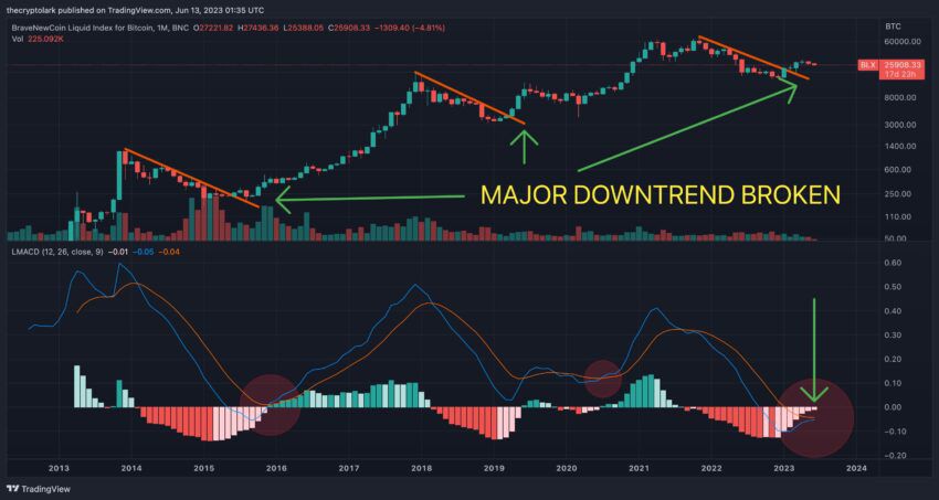 Предпосылки для дальнейшего роста биткоина также видит аналитик Ларк Дэвис. По его наблюдениям, BTC перешел в фазу позитивного движения.
