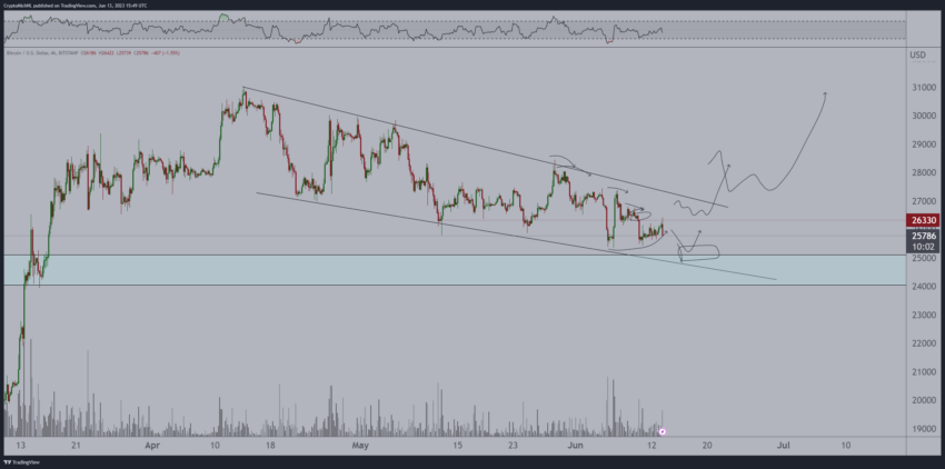 Некоторые из участников криптосообщества считают, что впереди обновление циклического минимума BTC. Например, трейдер @irncrypt дал прогноз биткоина, который не исключает падения криптовалюты к $12 тыс. до конца 2023 года.