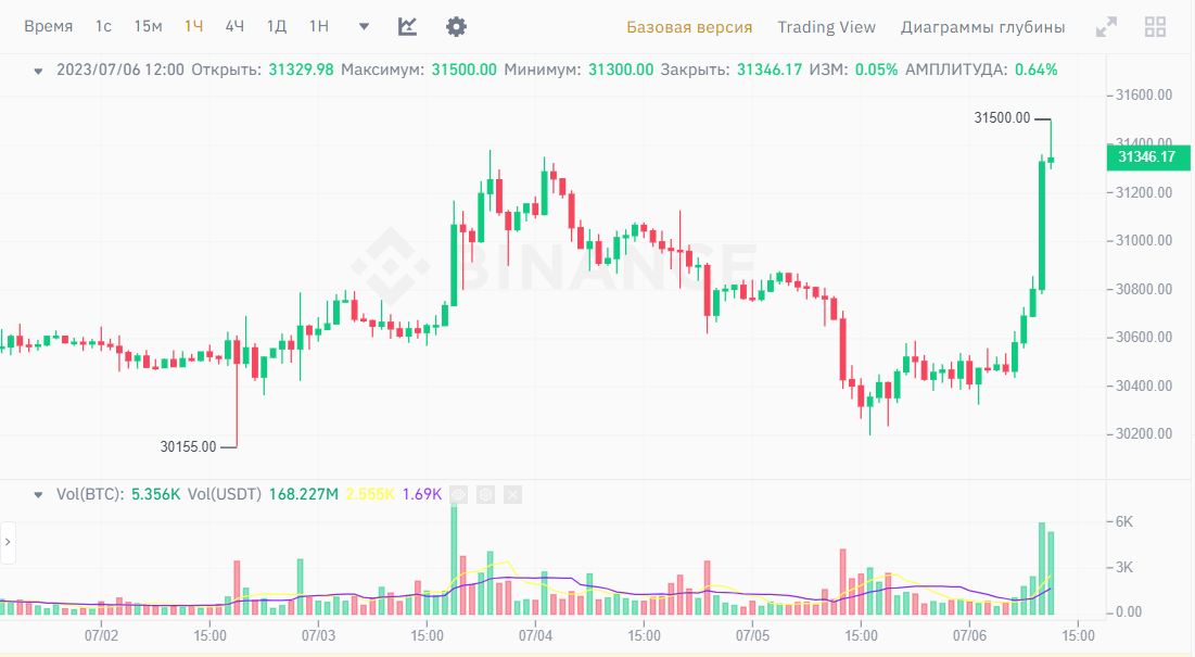 Напомним, что ранее цена Биткоина уже преодолела отметку в 31 000 долларов.