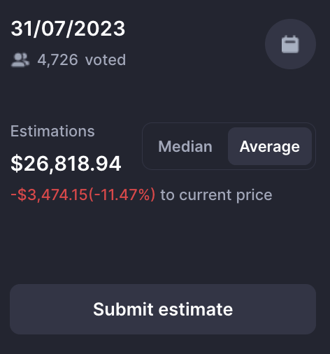 Размышляя на тему будущей цены BTC, в сообществе CoinMarketCap провели голосование по поводу цены биткоина на 31 июля 2023 года. По их ожиданиям она должна составить $ 26 818, что означает снижение цены относительно текущей примерно на 11%.