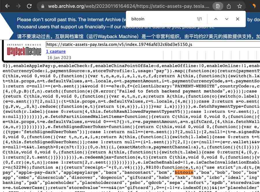 Именно поэтому биткоин и Dogecoin присутствовали в исходном коде ещё в январе 2023 года, и команда Tesla попросту не удалила этот код при деактивации опции BTC-платежей.
