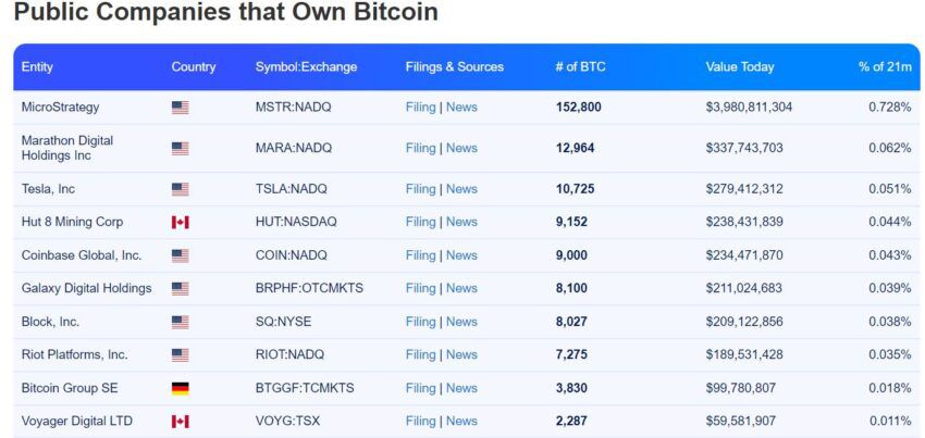 Всего под контролем публичных компаний 3.9% от всей эмиссии биткоинов.