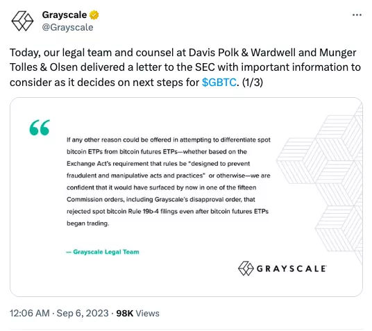 Grayscale утверждает, что спотовый биткойн-ETF одобрят, поскольку он основывается на том же соглашении о надзоре за рынком, что и Чикагская товарная биржа, которое SEC сочла достаточным для фьючерсных биржевых фондов на основе первой криптовалюты.