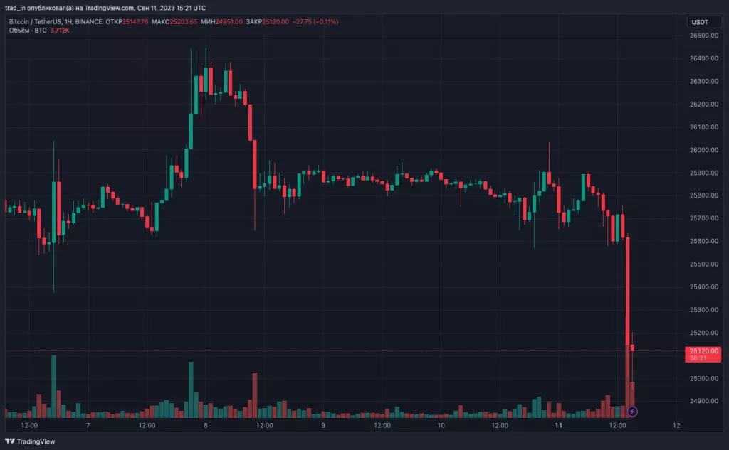 В понедельник, 11 сентября, котировки первой криптовалюты опустились до $24 953 (на бирже Binance). За последние сутки актив потерял 2,8%, согласно CoinGecko.