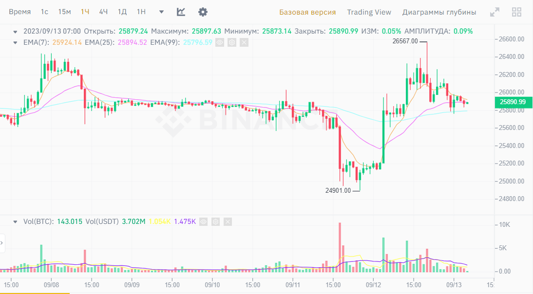 Исходя из вышеуказанной информации, курс Биткоина, скорее всего, составит от 25 500 до 26 500 долларов в ближайшее время. Резкой волатильности на рынке не ожидается.