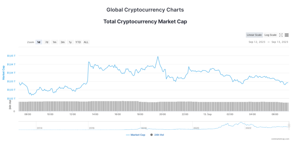 Общая капитализация рынка криптовалют упала на 0,62% до 1,03 триллиона долларов США, а объем рынка вырос на 82,81% до 37,73 миллиарда долларов США за последние 24 часа.