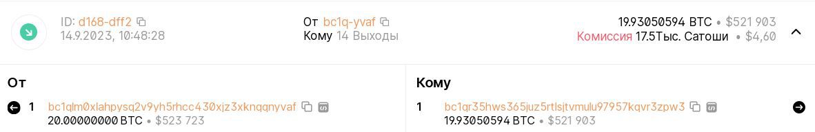 10 сентября участники криптосообщества обнаружили, что неизвестный пользователь заплатил крупнейшую в истории рынка цифровых активов комиссию за перевод небольшой суммы биткоинов. Средний объем комиссий в сети BTC, по состоянию на момент совершения транзакции, составлял $2,176. Это значит, что пользователь, по ошибке, заплатил за перевод, примерно, в 255 000 раз больше, чем надо было.