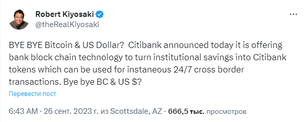 Новая инициатива Ситибанка под названием Citi Token Services была представлена в конце августа Ситибанк, непонятно, почему эта новость взволновала известного инвестора именно сейчас. Скорый крах доллара Кийосаки предрекал регулярно, в безошибочности инвестиций в биткоин он усомнился в первый раз.