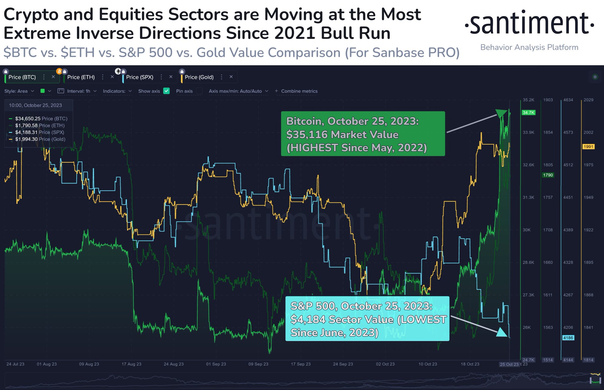 Компания Santiment отмечает, что приток капитала в криптосферу привел к ослаблению привлекательности американского технологического сектора.