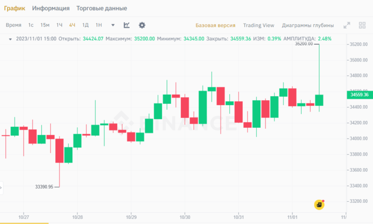 Цена Биткоина в моменте преодолела отметку в 35 000 долларов, но потом скорректировалась до 34 880 долларов. Тем самым Биткоин продемонстрировал, что бычий тренд продолжается.