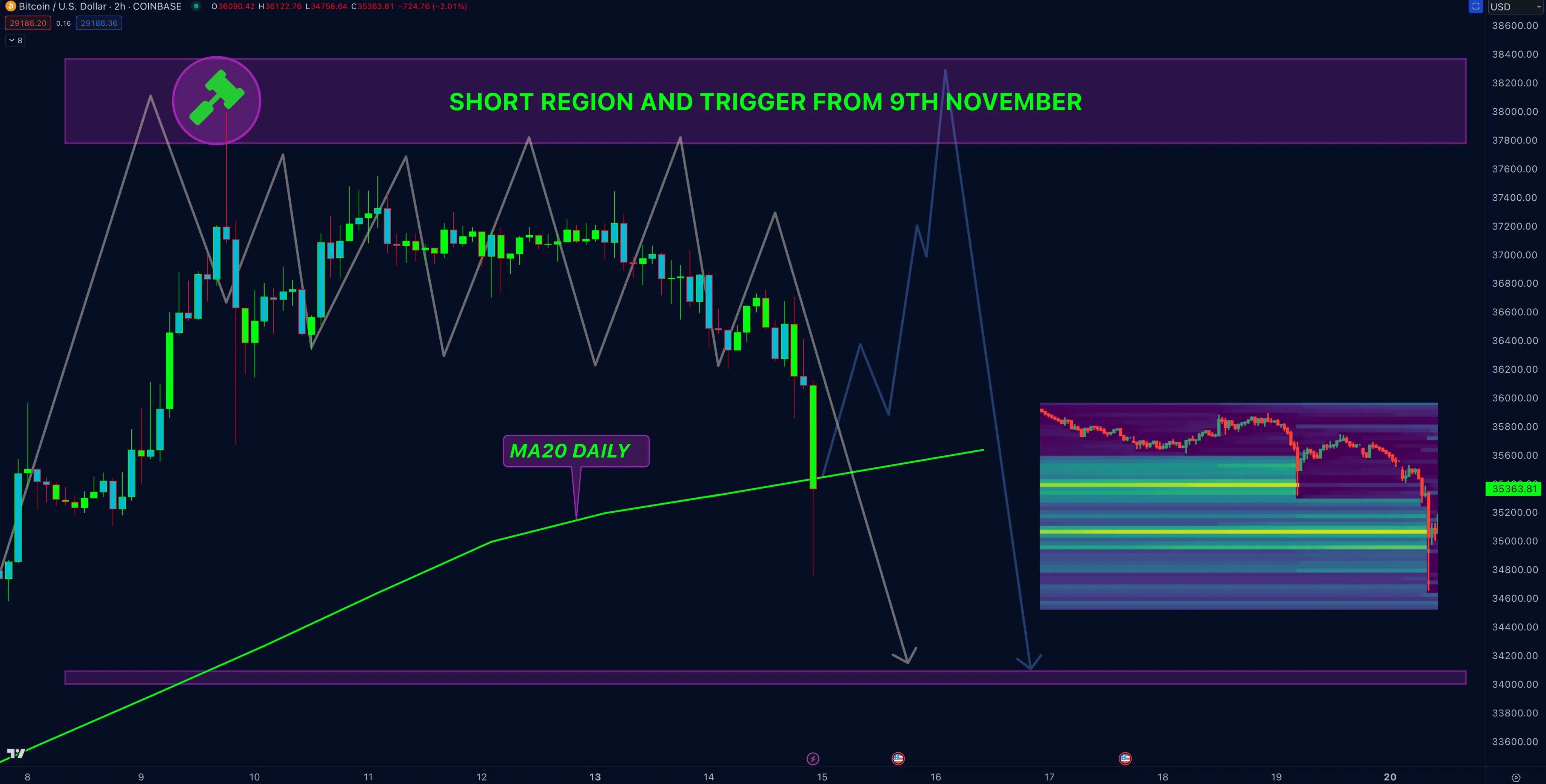 14 ноября 2023 года биткоин вышел в падение. К вечеру криптовалюта снизилась более чем на 5%. Минимум BTC за 24 часа, по данным CoinMarketCap — $34 948, максимум — $36 753. По состоянию на момент написания обзора, монета торгуется по $35 578.