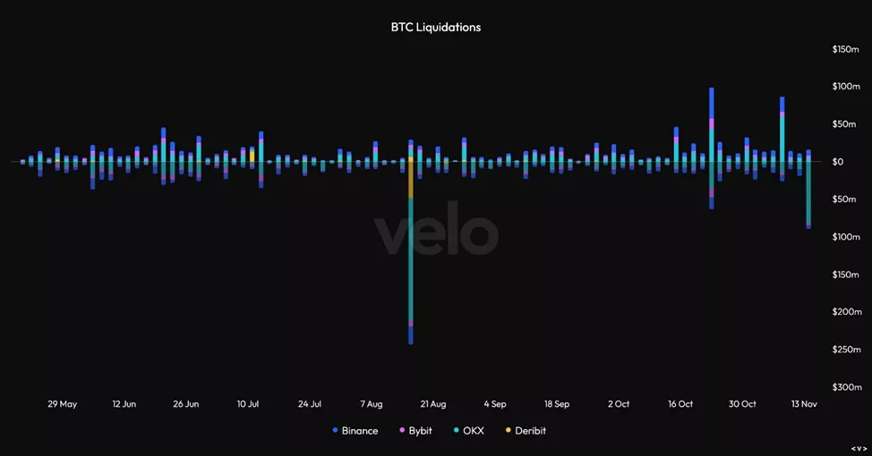 Так, 13 ноября объем вынужденных закрытий длинных позиций по бессрочным контрактам достиг $89,5 млн — максимума с августа.