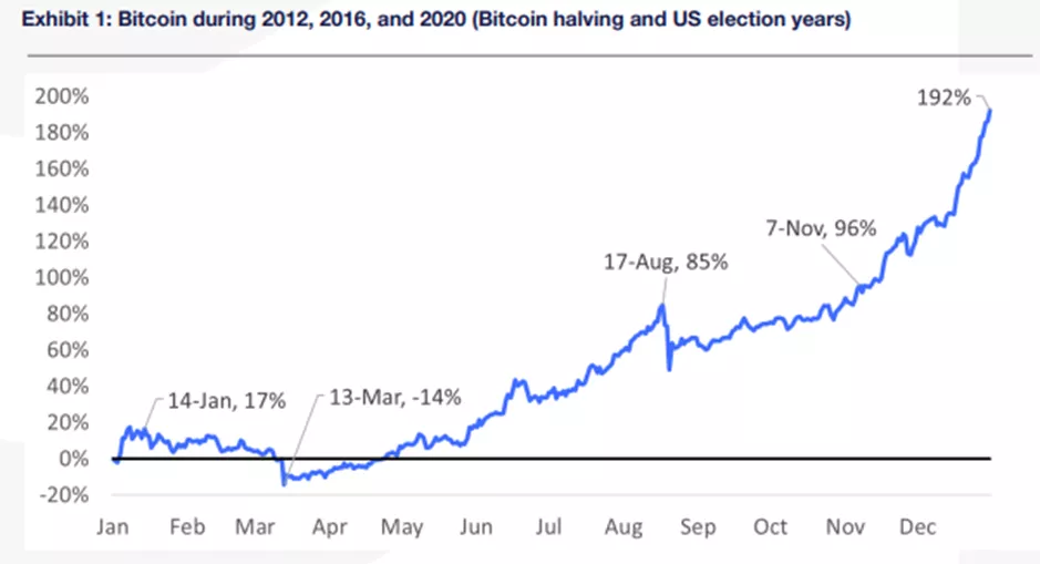 «Исторически сложилось так, что годы халвинга были в целом оптимистичными: 2012 (+186%), 2016 (+126%) и 2020 (+297%)», — сообщили они.