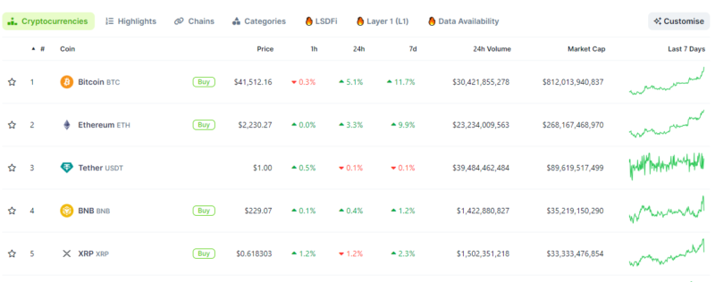 Сегодня цена Биткоина превысила отметку в 42 100 в моменте. На данный момент курс Биткоина скорректировался и составляет около 41 500 долларов.