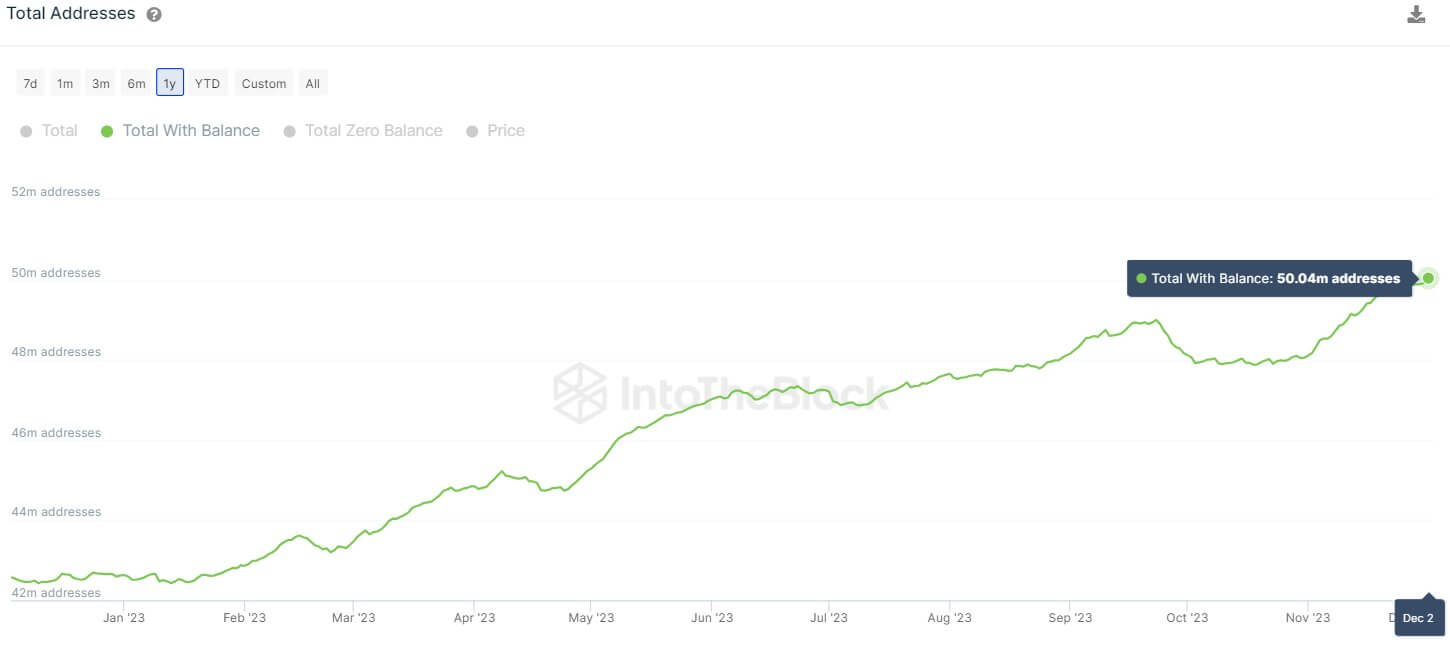 Также стоит отметить, что на выходных число адресов с ненулевым балансом в сети Биткоина превысило отметку в 50 миллионов единиц. Показатель существенно вырос за последние недели, поэтому можно утверждать о прыжке популярности криптовалют среди держателей капитала.