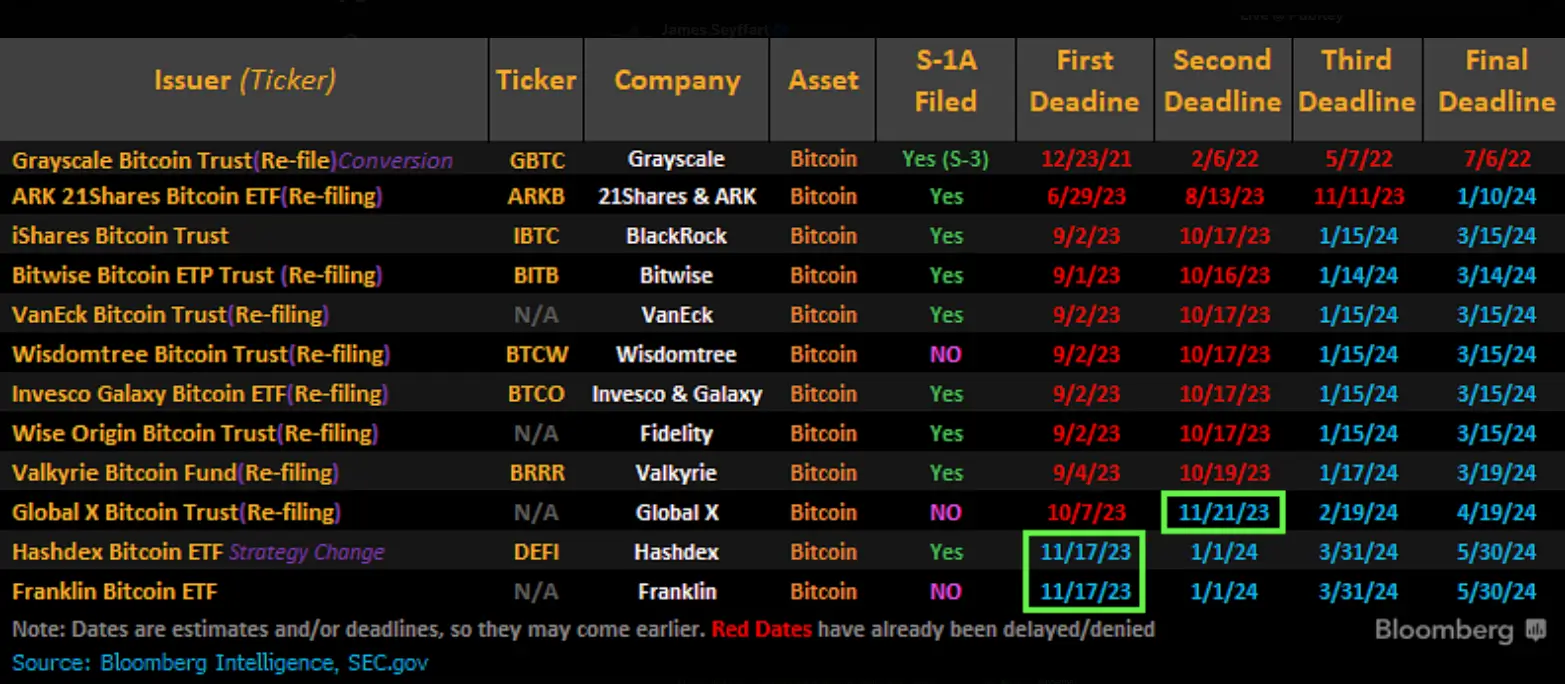 Очередь заявок на запуск спотовых Биткоин-ETF в США