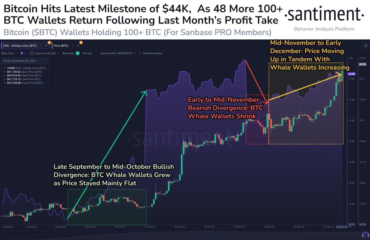 В декабре накопление возобновилось. Такое поведение адресов, контролирующих более 100 BТC, создает условия для скачка до $45 000 уже в декабре.