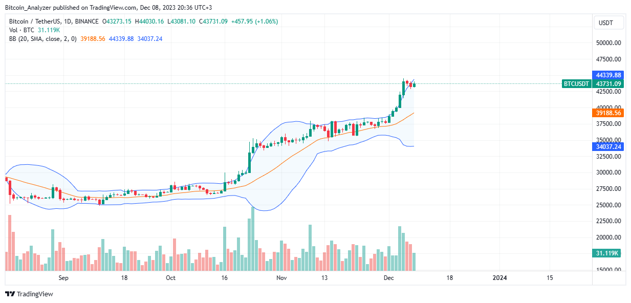 BTC несколько раз пытался закрепиться выше $44 000, однако из-за фиксации прибыли он падал ниже этого психологической отметки.