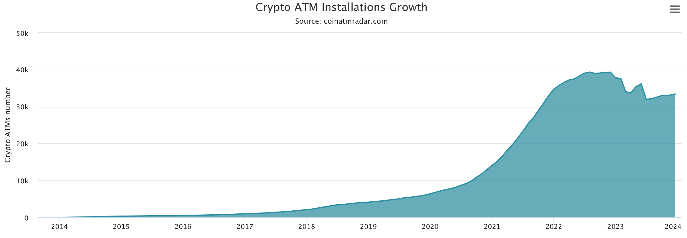 Одна из метрик принятия Биткоина – рост количества криптоматов в мире