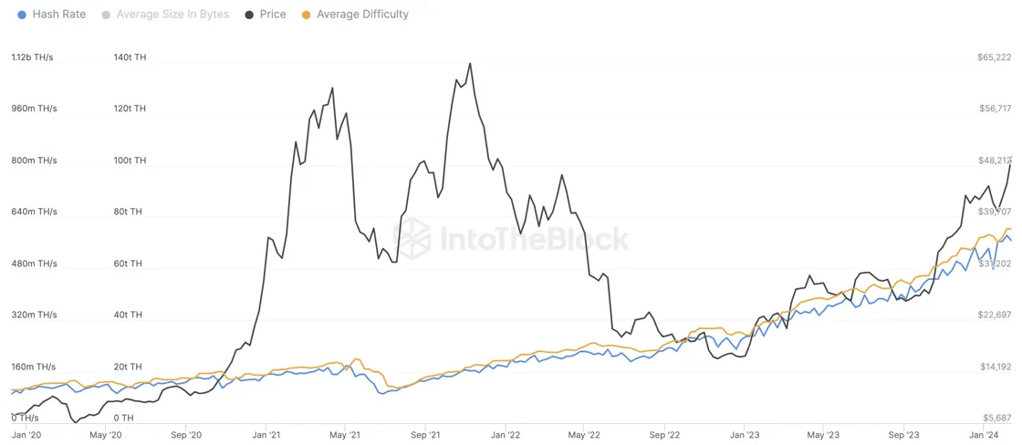 Скорость хеширования биткоина. Данные: IntoTheBlock.