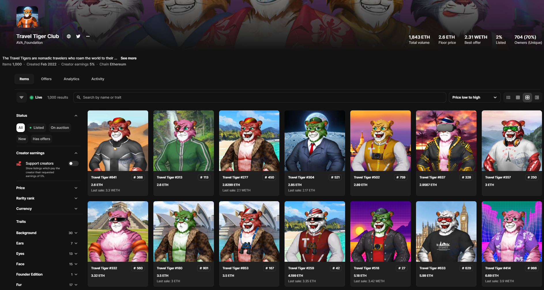 Ограниченное число путешественников будет иметь право на участие в схеме вознаграждений, учитывая, что существует только 1000 NFT Travel Tiger. NFT — это случайно генерируемые предметы коллекционирования, отчеканенные на блокчейне Ethereum. По рыночным данным OpenSea минимальная цена Travel Tiger’s составляет 2,6 ETH, что на момент публикации оценивается примерно в 9800 долларов США.