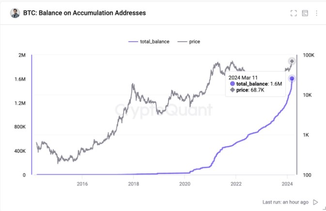 Эксперт также отмечает, что количество биткоинов на «адресах накопления» (в кошельках, принимающих только входящие транзакции) продолжает расти, но пока не достигло критического уровня для возникновения «кризиса» ликвидности.