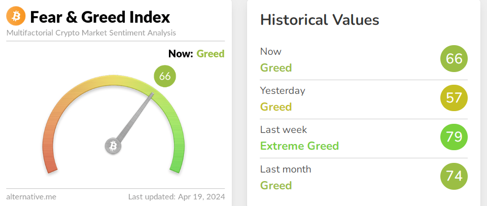 Индекс страха и жадности, несмотря на падение BTC, вернулся в зеленую зону, нарастив почти 10 пунктов. Изменения указывают на рост интереса к криптовалюте.