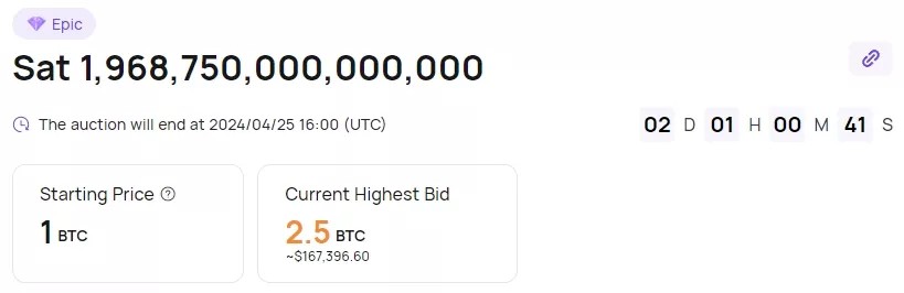 Майнинговый пул ViaBTC выставил на аукцион первый сатоши (sat) в халвинговом блоке, который по редкости относится к категории «эпических».