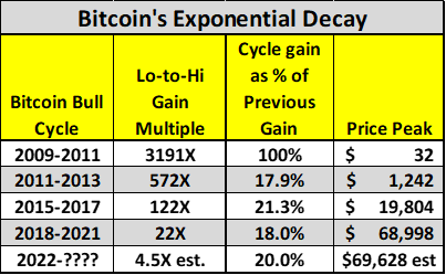 Ветеран трейдинга Питер Брандт (Peter Brandt) опубликовал теорию, согласно которой циклы бычьего рынка биткоина демонстрируют «экспоненциальный спад».