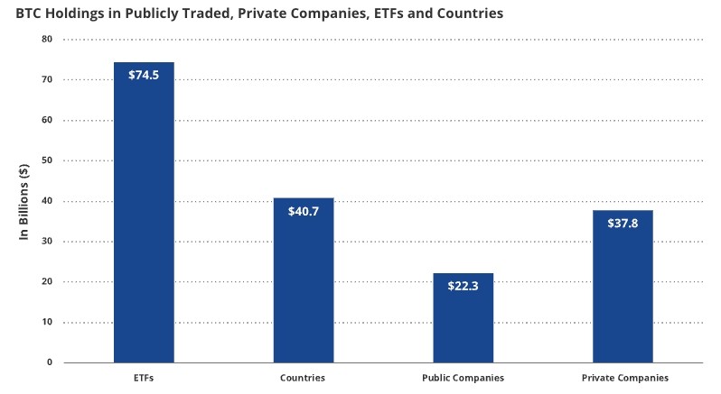 В новом отчёте VanEck отмечается, что в настоящее время в различных ETF, странах, государственных и частных компаниях, которые приобрели популярную криптовалюту, имеется в общей сложности около $175 млрд в биткоинах.