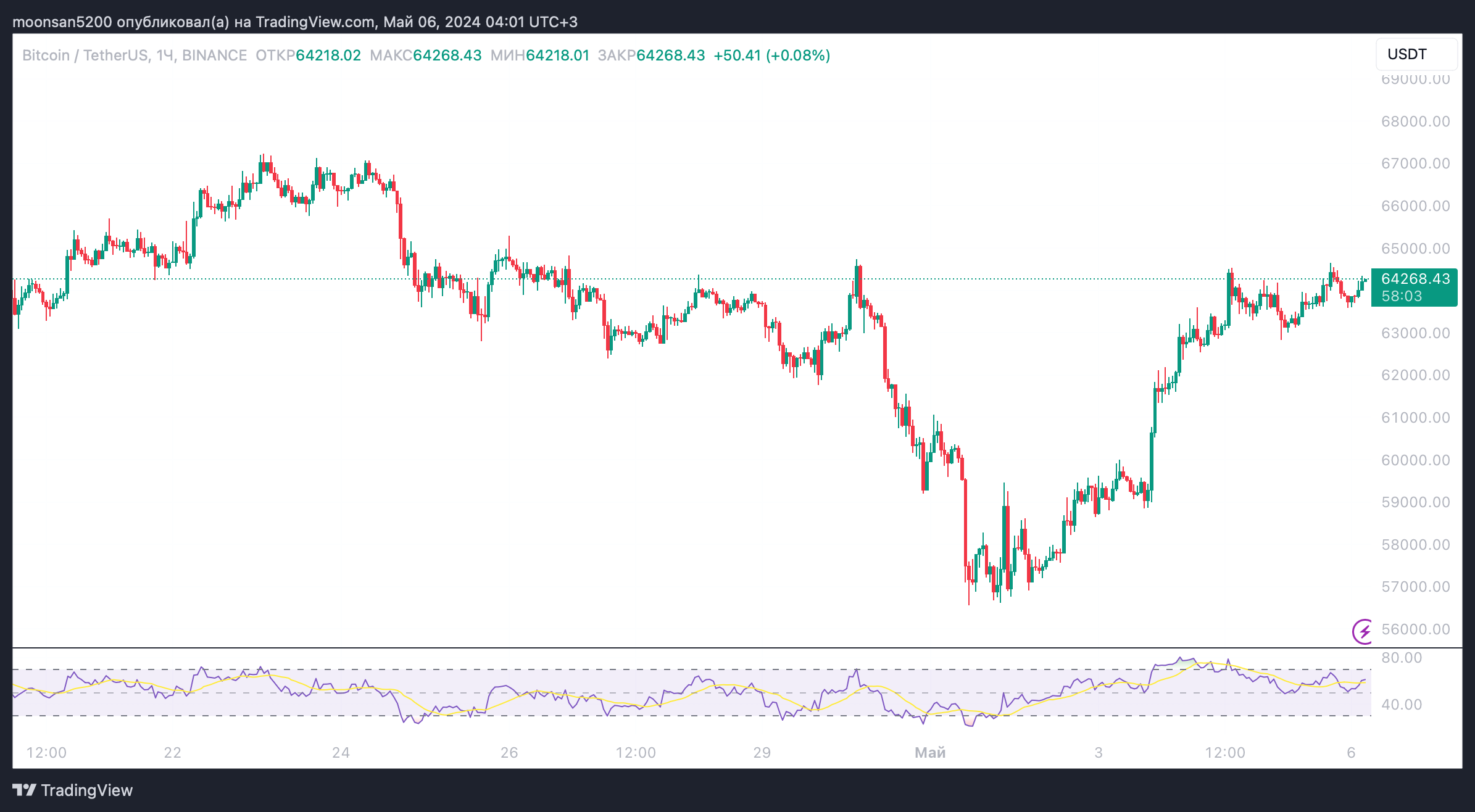 Курс BTC в масштабе 1-часового графика